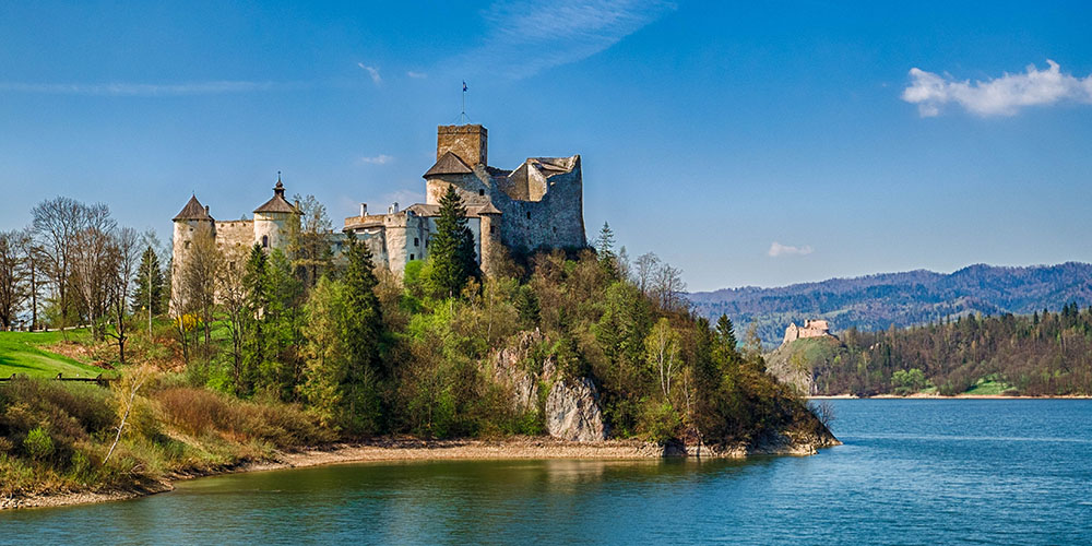 Zwiedzanie zamków królujących nad wodami jeziora Czorsztyńskiego. Czorsztyn – ruiny gotyckiej warowni. Następnie przeprawa gondolami do Niedzicy – średniowieczny zamek „Dunajec”.